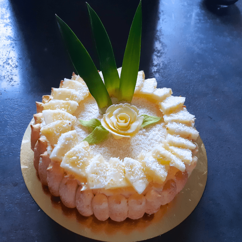 Voici un entremet qui m’a été demandé de réaliser dans le cadre de ma formation au CAP pâtissier (atelier des chefs). Il se compose d’un biscuit cuillère, d’un insert ananas et d’une mousse bavaroise à l’ananas. Vous pouvez y ajouter, comme moi, une touche de rhum et/ou de noix de coco pour encore plus de…