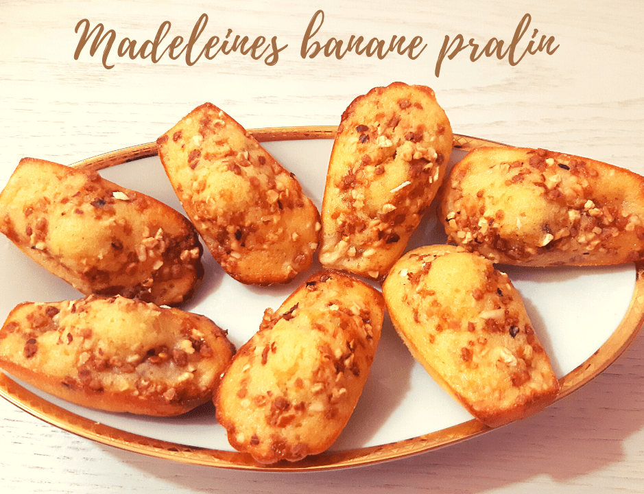 Si vous avez envie de changer des traditionnelles madeleines au citron ou à la vanille, essayez donc ma version banane-pralin, les deux saveurs s’associent très bien 🍌🍌