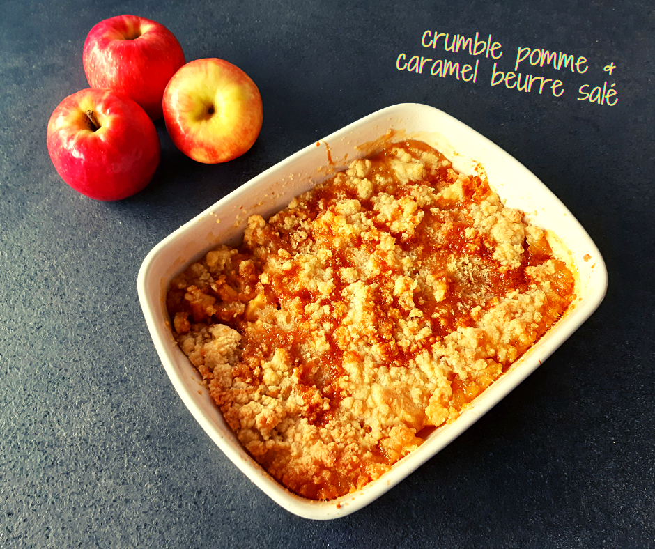 J aime beaucoup les crumbles ! C’est donc toujours avec plaisir que j en prépare avec amour 🙂 Celui-ci est plutôt simple mais le caramel beurre salé apporte un petit plus et s’associe très bien avec les pommes !