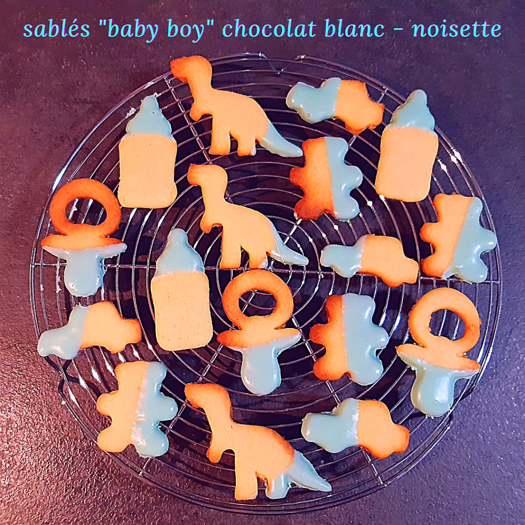 Ces sablés sont idéals pour fêter une naissance ou pour attendre bébé avec impatience et gourmandise 😊 Si le bébé est une fille, vous pouvez remplacer la pâte à sucre ou le nappage bleu clair par du rose ou la couleur que vous avez envie.