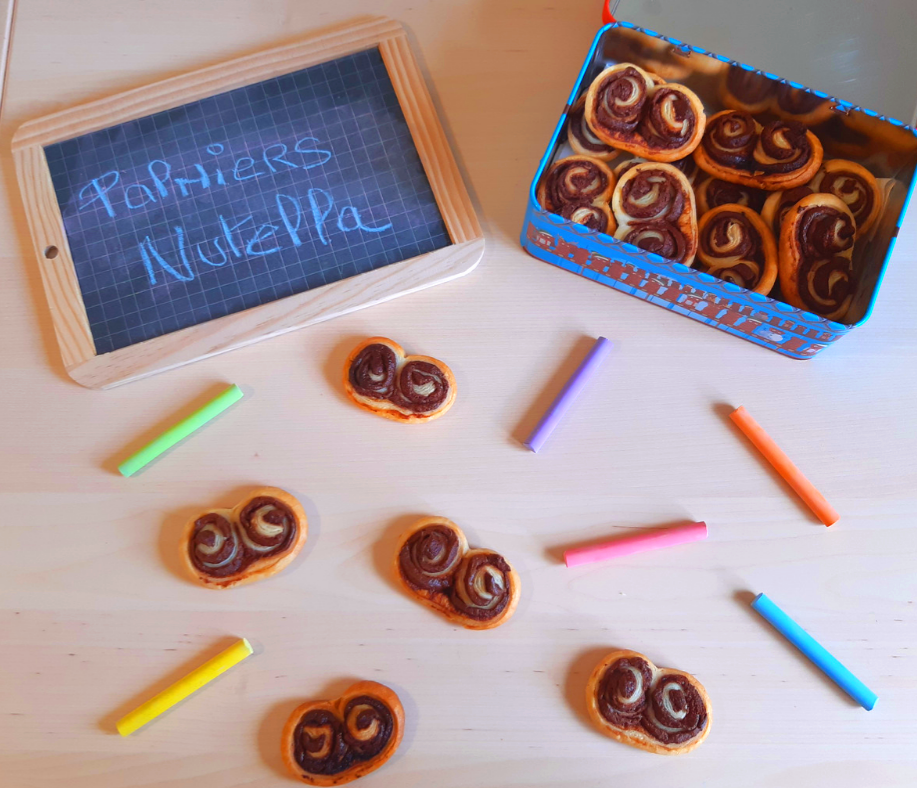 Que dire des célèbres palmiers ? Simples et efficaces 🙂 Ils sont encore plus gourmands quand ils sont généreusement garnis de pâte à tartiner non ? Vous pouvez les réaliser tout simplement au sucre ou choisir une autre pâte à tartiner : spéculoos, crème de marron, caramel… Vous pouvez, aussi, rajouter de fines rondelles de banane sur le Nutella ! Les palmiers s’adaptent à chacune de nos envies 😉