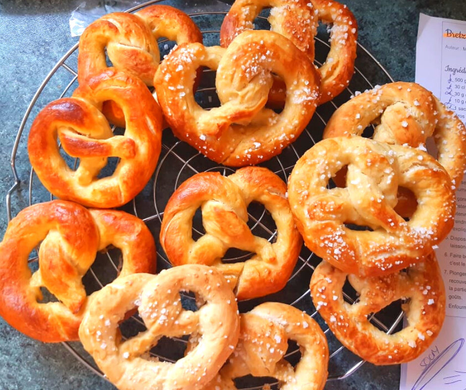 Déposez vos bretzels sur 2 plaques recouvertes de papier cuisson (5 et 5).