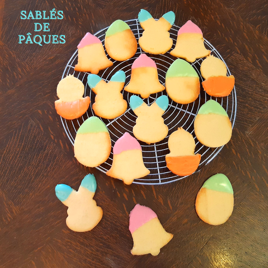 Etalez votre pâte entre 2 feuilles de papier cuisson. Détaillez vos sablés avec des emporte-pièces sur le thème de Pâques : lapin, poussin, cloche, œuf… Retirez délicatement les chutes, refaites une boule avec et remettez la pâte quelques instants au frigo pour qu’elle soit bien froide et que les biscuits ne se déforment pas à la cuisson. Glissez votre feuille de papier cuisson où il y a vos sablés sur une plaque de cuisson et enfournez pour environ 10 minutes. Surveillez attentivement la cuisson et enchainez les fournées. Laissez vos sablés refroidir sur une grille !