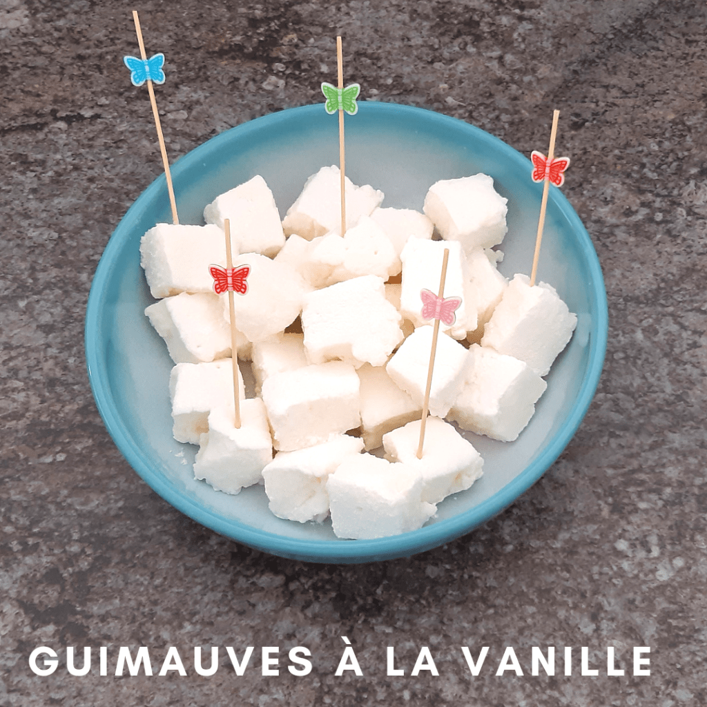 Qui n’aime pas la guimauve ?!? 🙂 On en mange rarement qu’une ! Je vous ai déjà proposé plusieurs versions : fraise, citron et à la rose. Voici la version vanille 🙂 Des petites guimauves bien fondantes et moelleuses !