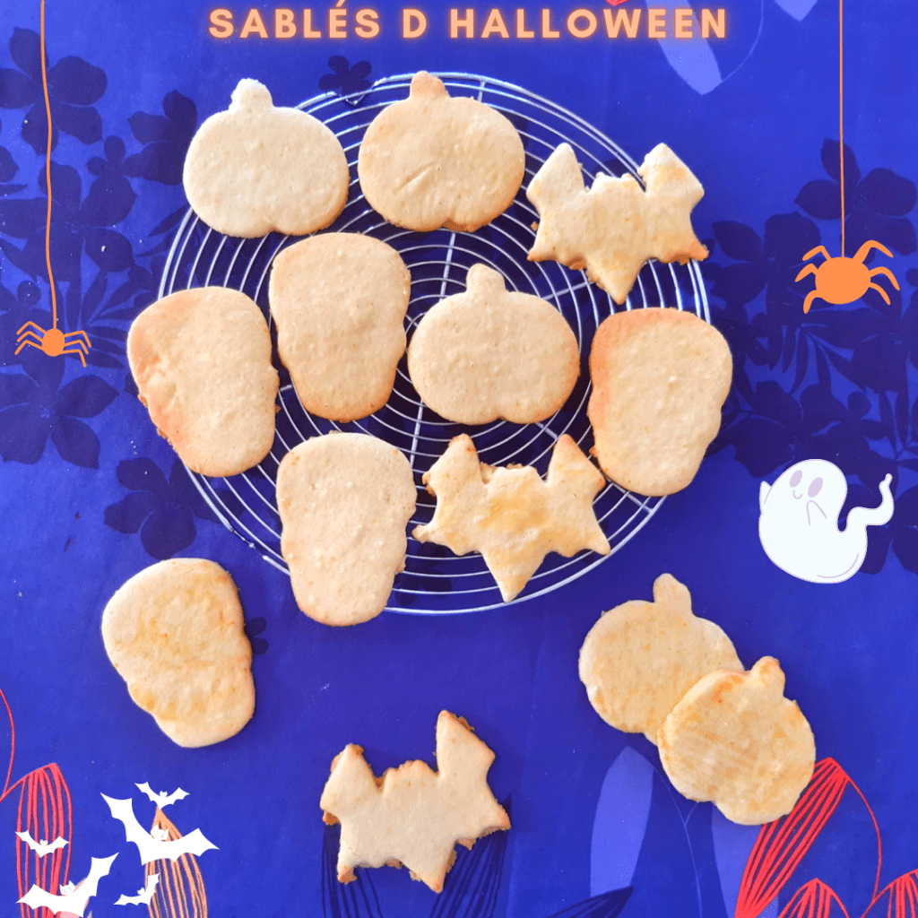 Je n’avais pas trop d’idées, cette année, pour Halloween. Je suis partie sur de gros sablés généreux et gourmands au bon goût de clémentine 🙂 Simples et efficaces 😉 Pour un esprit plus Halloween, ajoutez de la pâte à sucre noire sur les têtes de morts et les chauve-souris, et de la pâte à sucre orange sur les citrouilles.