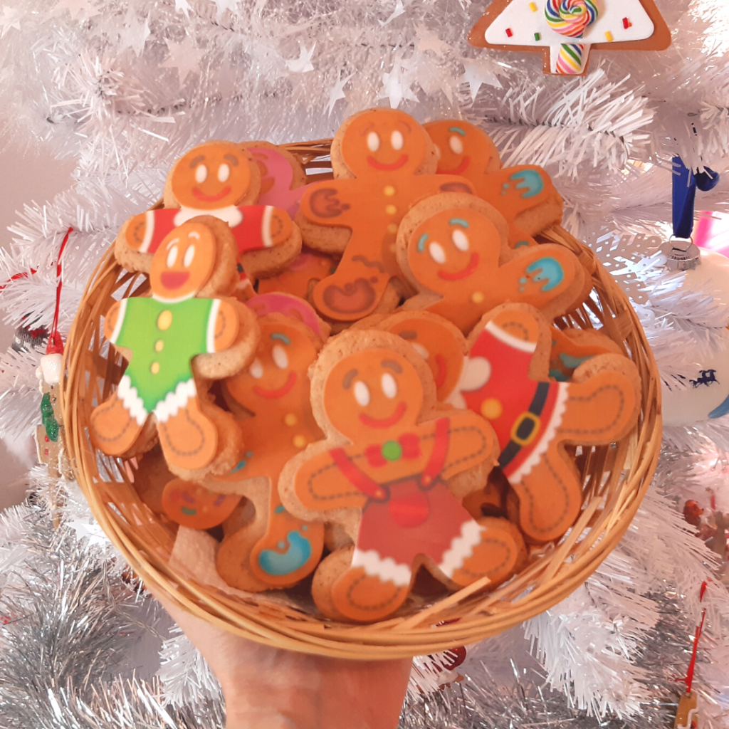 Le grand classique des fêtes de fin d année : les sablés de Noël ! Cette année, pour décorer la table et pour mettre dans chaque assiette des invités, j’ai réalisé des biscuits Ginger Man aux épices de Noel ! La décoration est faite en pâte à sucre. Je l’ai acheté prête à l’emploi et je suis contente du rendu 🙂 On peut très bien réaliser les sablés sans décoration ou en ajoutant du glaçage, du nappage chocolat, de la pâte à sucre… A personnaliser selon vos envies 🙂