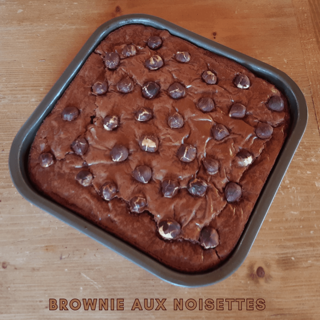 Encore un bon brownie comme on les aime ! Cette fois, il est aux noisettes 🙂 Je l’ai réalisé pendant mes vacances, en famille, à la montagne. Il a été dévoré en 1 seul repas ! Pour les amoureux du chocolat et de la noisette, à tester absolument 😉