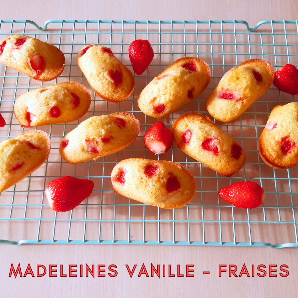 Les fraises sont, enfin, là 🙂 Autant en profiter un maximum 😉 J’adore les utiliser dans mes pâtisseries. Ici, je vous les propose dans de bonnes madeleines bien moelleuses ! ça change un peu des madeleines classiques. Vous pouvez remplacer la vanille par du citron, ça matche aussi très bien 🙂
