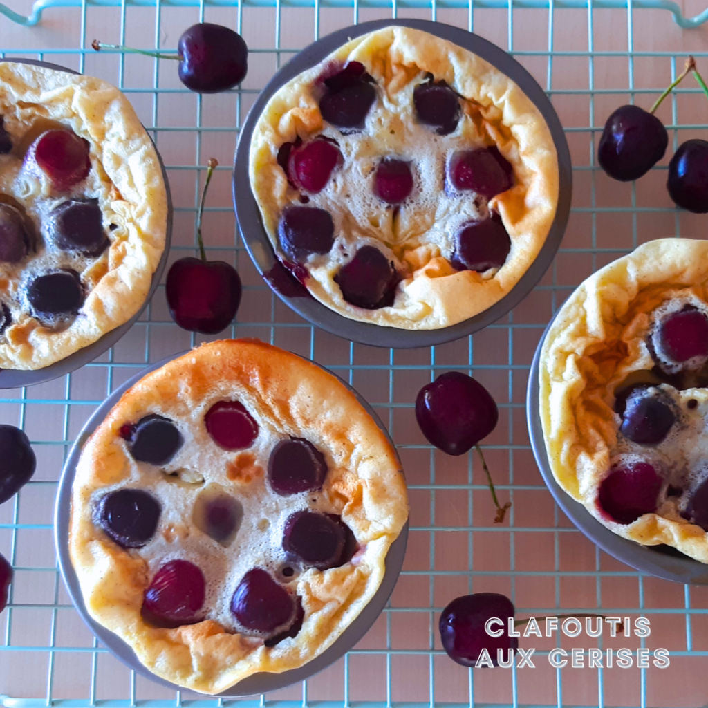 La saison des cerises bat son plein ! Elle ne dure pas assez longtemps selon moi 😦 J’ai profité des premières cerises pour faire des clafoutis individuels ! J’aime bien les clafoutis et c’est avec des cerises que je les préfère. Une recette simple, basique mais efficace 😉 A adapter selon les fruits de saison 🙂