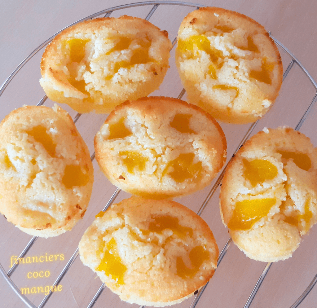 J’adore la mangue, c’est un de mes fruits préférés, et pourtant, je l’utilise peu dans mes gâteaux. Je me rattrape un peu avec cette recette de financiers noix de coco – mangue 😉 Une petite association exotique très sympa qui fait varier les plaisirs sucrés 🙂