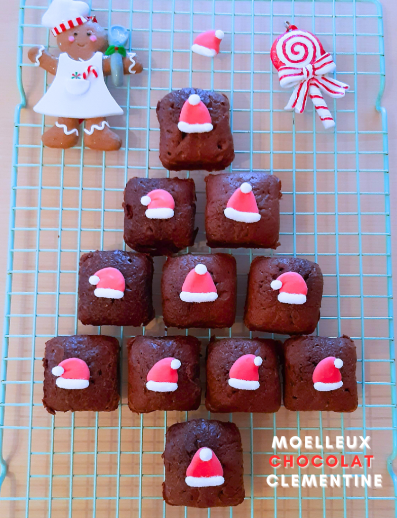 Pour cette deuxième recette de Noel, je vous propose une association que j’adore : chocolat – clémentine 😉 Ces petits moelleux très gourmands ont été bien appréciés par mon chéri 🙂 Ils sont rapides et faciles à faire pour un goûter avec les enfants en attendant le Père Noel par exemple 😉