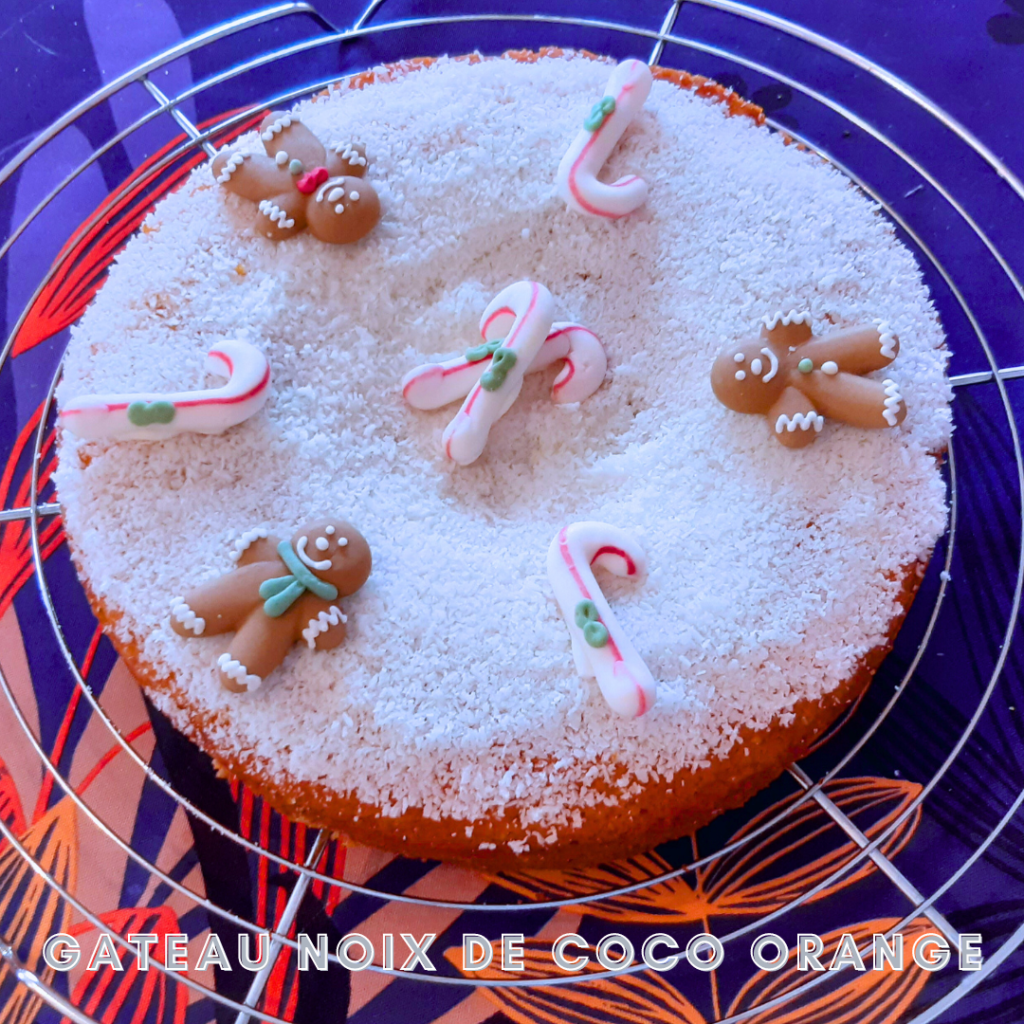 Voici un bon gâteau pour les fêtes de fin d’année 🙂 La noix de coco s’associe très bien avec l’orange qui est un fruit de saison. Et la décoration rappelle la neige et Noel 😉 Ma famille a bien apprécié ce gâteau simple à réaliser et rapide à manger 😉