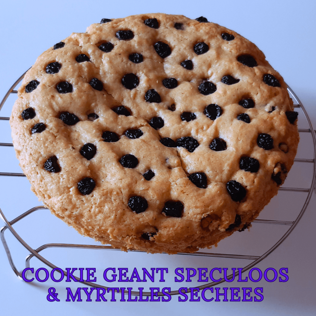 En voilà un cookie généreux qui a eu beaucoup de succès 🙂 Mes collègues ont vraiment apprécié son côté « cookie à partager » et bien évidemment aussi sa gourmandise 😉 Les myrtilles séchées changent un peu des pépites de chocolat pour un cookie plus fruité !