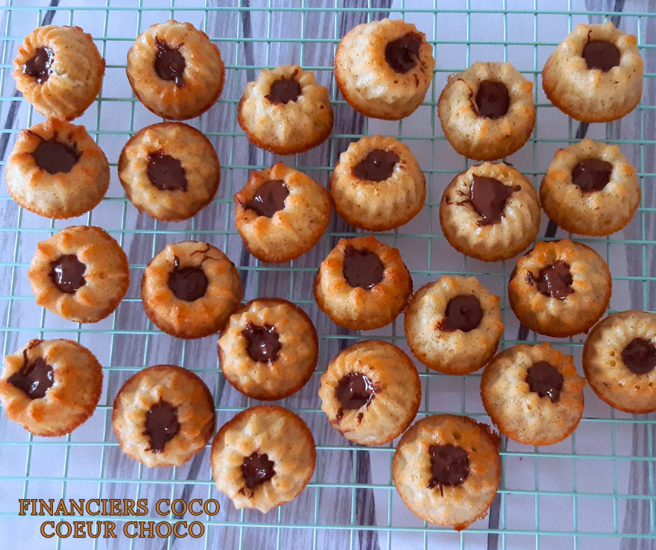 Des financiers à l’amande c’est bon 😋… mais à la noix de coco, et en plus avec un cœur chocolat, c’est encore meilleur (enfin pour moi 😁) ! Des petites gourmandises addictives faciles et rapides à réaliser !