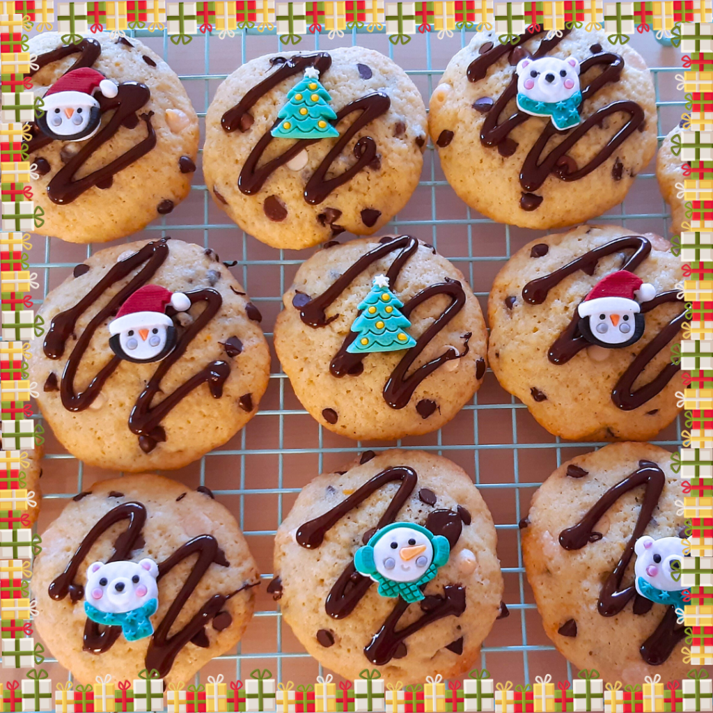 Lorsqu’ils ont totalement refroidis, vous pouvez rajouter du chocolat noir fondu et le décor de Noel sur le dessus de vos cookies.