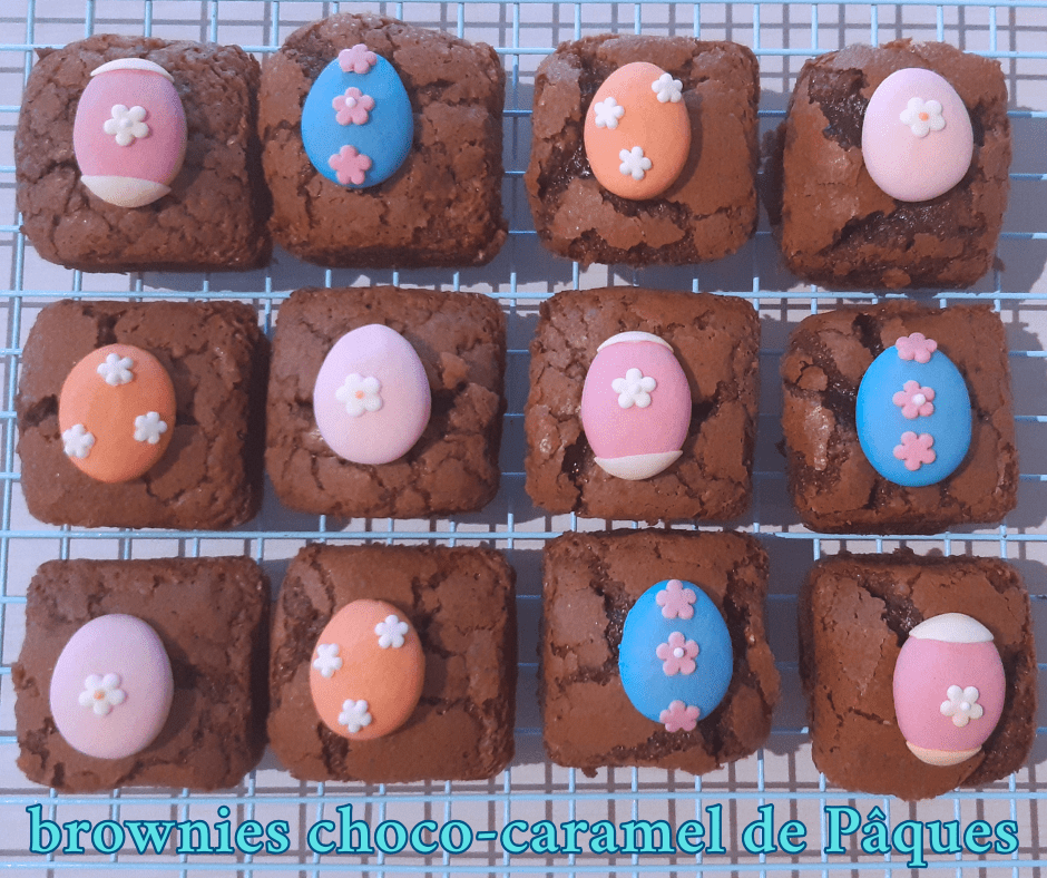 Après la version « poussins » https://patisseriesdechoupie.com/2025/04/03/brownies-poussins-de-paques/, voici la version « œufs » au caramel 🙂 Pratique à emporter pour le gouter ou idéal pour finir un repas tout en gourmandise en ce mois d’avril 🙂