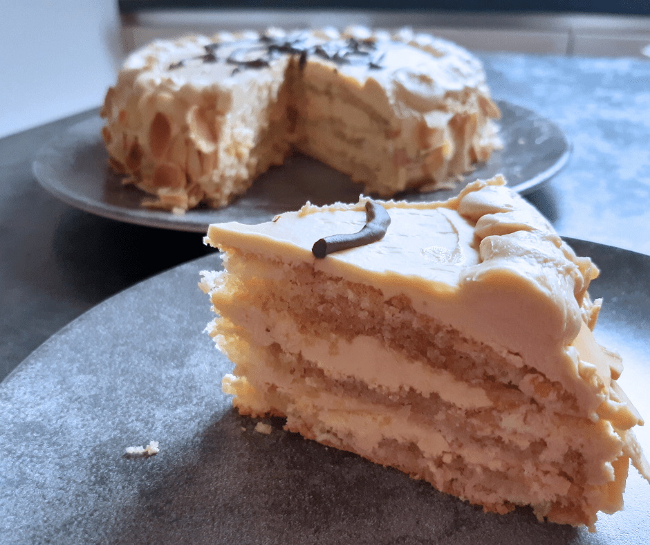 On continue l’entrainement pour le CAP pâtissier avec un grand classique du programme : le MOKA ! C’est un entremet à base de génoise et de crème au beurre au café ! Un dessert gourmand pour les amateurs de café 🙂 ce qui n’est pas mon cas mais mon chéri l’a mangé avec plaisir 😉