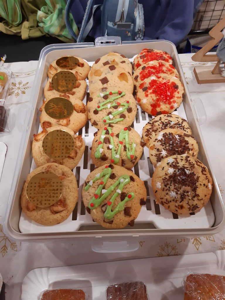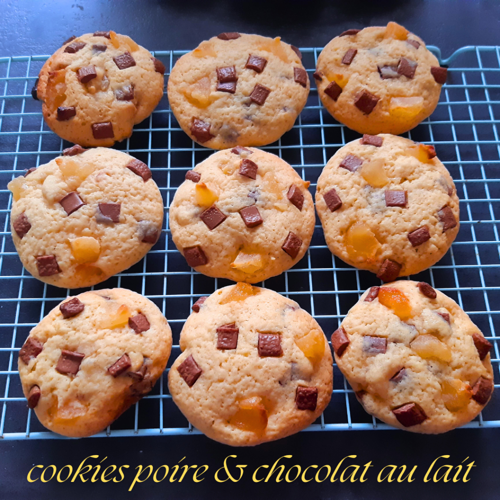 J’adore l’association poire – chocolat. Pour mon 1er marché de noël, j’avais réalisé ces délicieux cookies aux saveurs de noël : poire – chocolat au lait – cannelle. Ils ont bien plu et ont tous été dévorés 😉 Des cookies qui peuvent aussi être dégusté au coin du feu ou sous un plaid avec une tasse de chocolat chaud 🙂