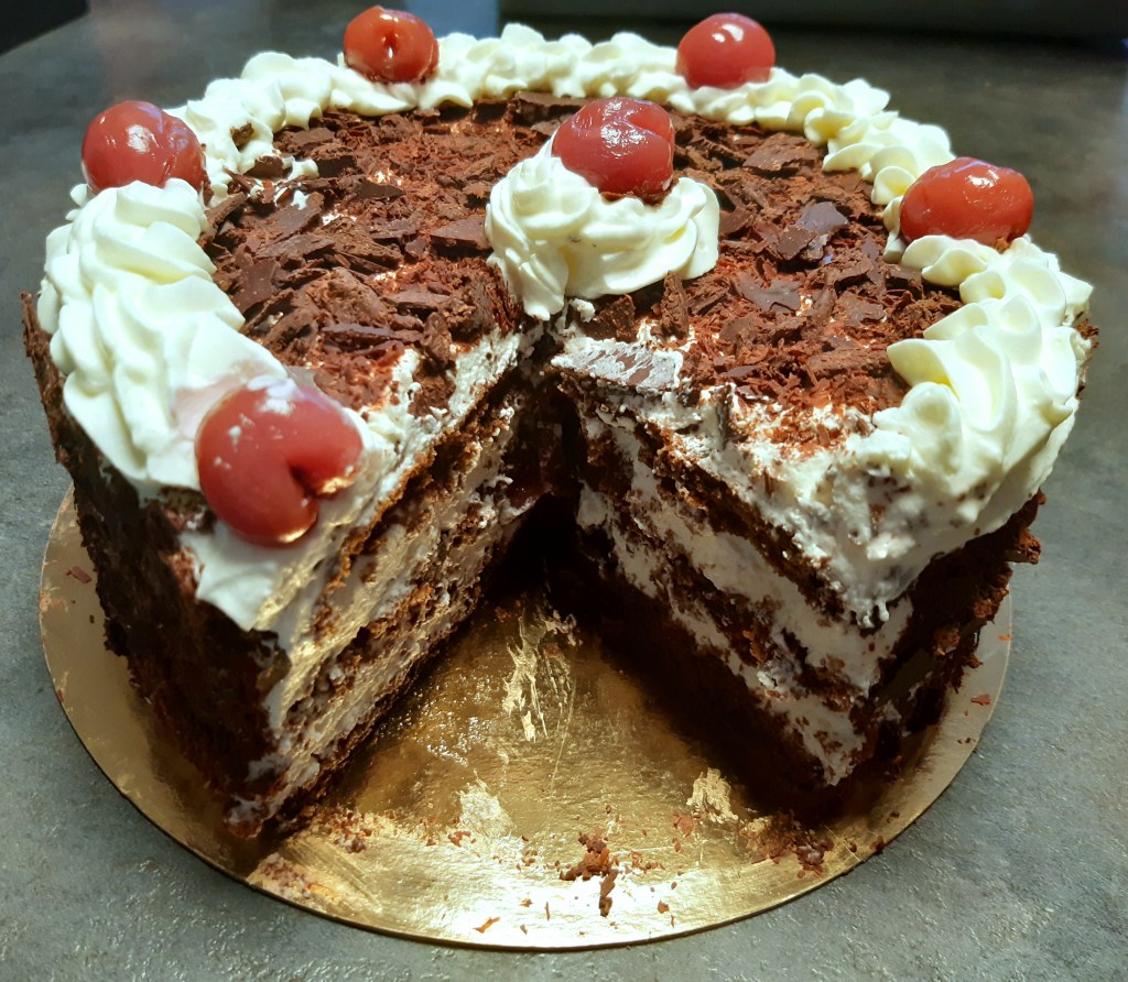 Un grand classique de la pâtisserie française : la forêt noire 🙂 3 couches de génoise au cacao, de la chantilly et des cerises ! Très très gourmand 😉 Et pas si difficile à réaliser alors n’hésitez pas à vous lancer !!!