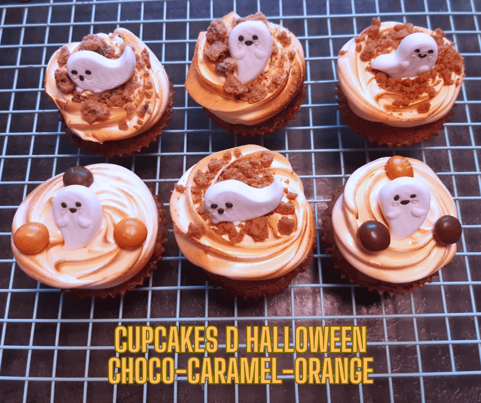 Halloween approche et cette année j’ai voulu faire une recette sur ce thème mais toute mignonne… j’ai réalisé des cupcakes fantôme assez gourmands au chocolat, caramel et zestes d’orange. Des petits gâteaux qui ont bien plu à mon chéri 🙂 Vous pouvez évidemment réaliser cette recette sans décoration d’halloween 🙂